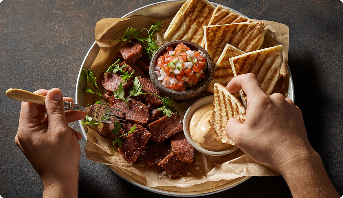 Tous les produits Redefine Meat™ sont préparés avec des ingrédients végétaux sans OGM, antibiotiques et cholestérol, et sans ingrédients et produits dérivés d’origine animale.